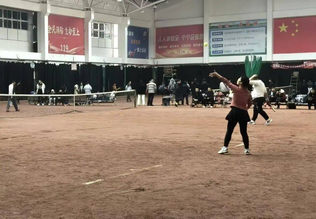 作为系列赛事的首场比赛,毽球和网球比赛在开幕式结束后同步展开。在四季花城全民健身活动中心,五人制毽球队激烈开赛,选手们脚法娴熟、配合默契,白色毽球在空中上下翻飞,引得现场观众不时喝彩;与此同时,巴彦淖尔市网球馆内同样精彩频现,青年选手敏捷精准,中年组合稳扎稳打,场边“好球”声此起彼伏,现场气氛活跃而有序。