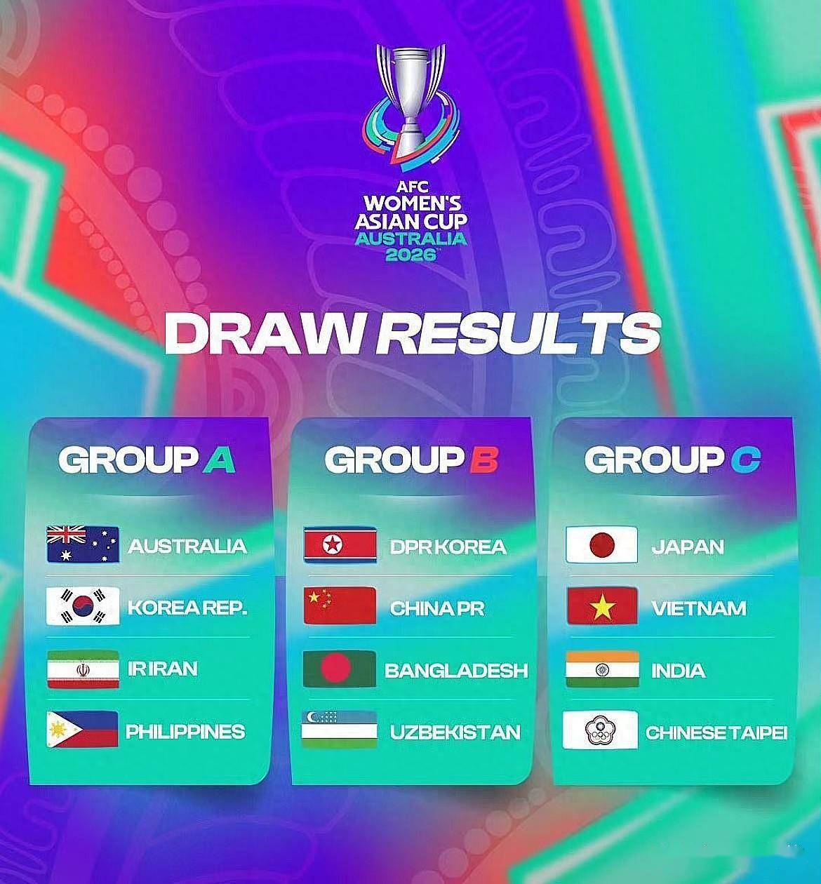 本届亚洲杯 12 支球队分 3 组,小组前两名 + 两个最佳第 3可晋级 8 强,规则也给中国女足的出线加了双保险。