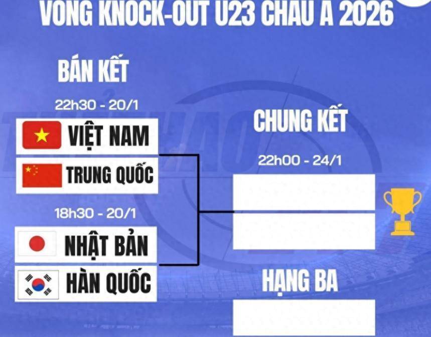半决赛的对阵和时间已经确定。 2026年1月20日晚上19:30,日本队将对阵韩国队。 同一天晚上23:30,越南队将与中国队交手。 这是中国队历史上第一次打进该项赛事的半决赛,越南队则是第二次,他们上一次进入四强是在2018年。