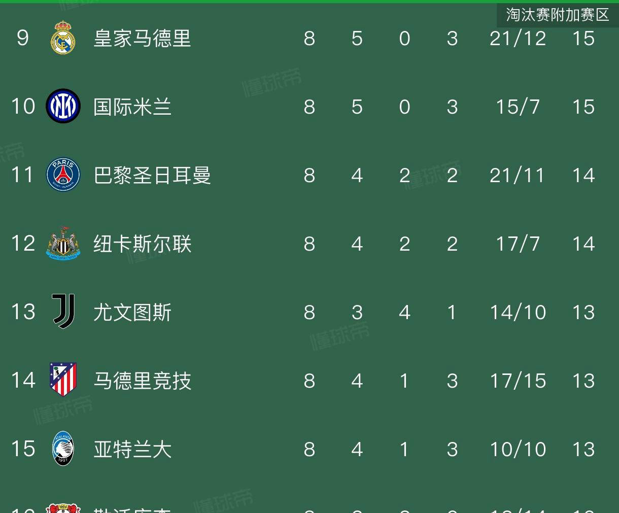 欧冠16强淘汰赛附加赛依照规则安排,第9至10名将在第23-24名对阵,第11至12名对阵第21-22名,以此类推完成全对阵安排,强队如皇马、巴黎圣日耳曼和国际米兰均不得不参加这关键赛段,令不少球迷颇感意外。