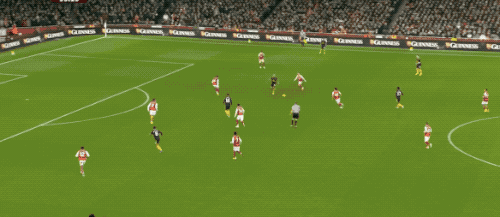 然而,领先的优势并未持续太久。第37分钟,苏维门迪出现致命失误,他的回传球力度过小,姆伯莫抓住机会,冷静晃过阿森纳门将拉亚,将球送入空门,曼联扳平比分。值得一提的是,直到第30分钟,曼联才由B费完成了本场比赛的第一次射门。第33分钟,曼联发动快速反击,经过流畅的连续传递,B费获得了绝佳的射门机会,但在阿森纳后卫萨利巴的干扰下,他的射门最终偏离了目标。上半场补时阶段,B费精准长传,姆伯莫不停球直接选择吊射,皮球划出一道美妙的弧线,可惜稍稍偏出球门。上半场比赛结束,双方射门次数为7-6,阿森纳略占优势,但两队都只有1次射正,而恰恰都是最终转化为进球的那一次。