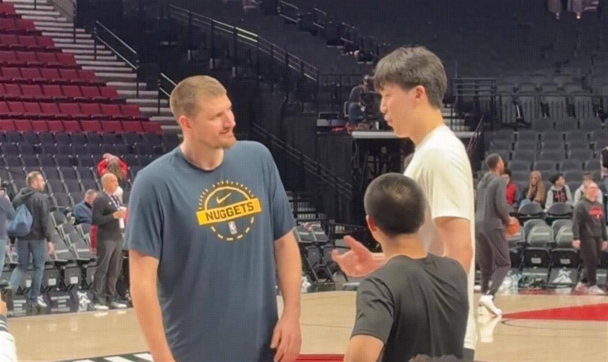 掘金队的当家球星,荣膺三届常规赛MVP的尼古拉·约基奇,结束了例行的投篮训练。他没有像往常一样径直走向更衣室,而是悠然踱步,朝着开拓者队的半场走去。他的目光,精准地锁定在了那位备受瞩目的中国新星身上——杨瀚森,那个被球迷们亲切地称为“中国约基奇”的年轻球员。