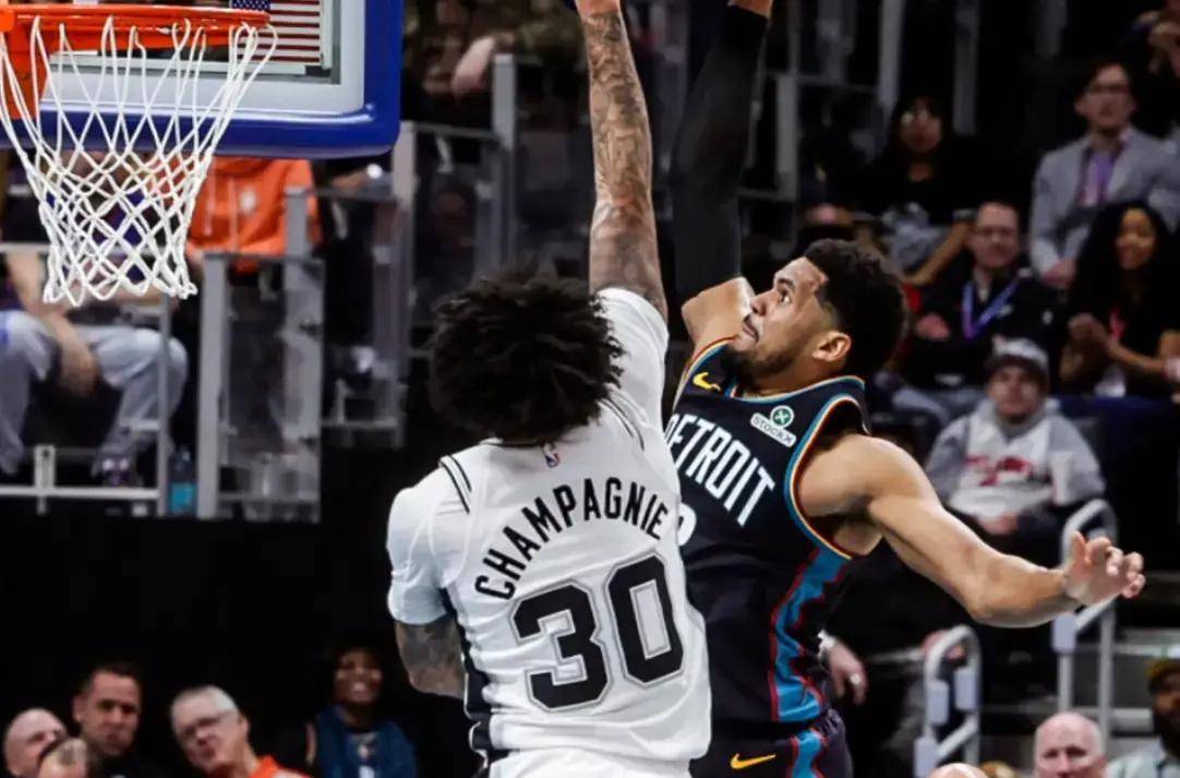 ??比赛的另一层看点在于状元对决。文班亚马的护框能力在关键时刻发挥到极致,几乎每一次活塞尝试打进禁区,都要经过他的长臂关卡。坎宁安则更多依赖传导球来寻找突破口,但在马刺紧凑的防守和高效的换防之下,活塞的外线投射空间被压缩到最低。