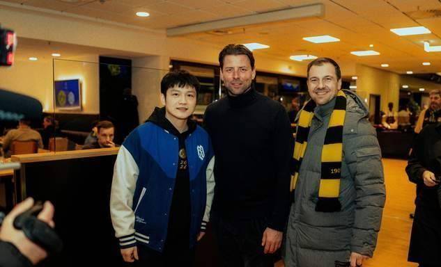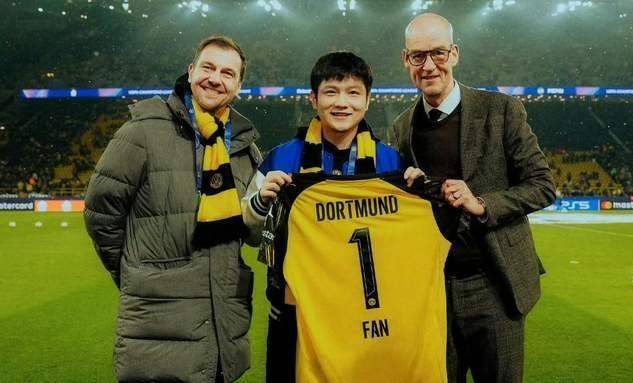 这个画面特别有意思,一个是中国乒乓球奥运冠军,一个是德国乒乓球名将,两人不在球台前挥拍,反而出现在欧冠比赛的观众席。 那天多特蒙德0-2输给了国际米兰,但樊振东的注意力显然不止在比赛结果上。 他手里拿着新获赠的球衣,眼神里透着那种纯粹球迷的兴奋。