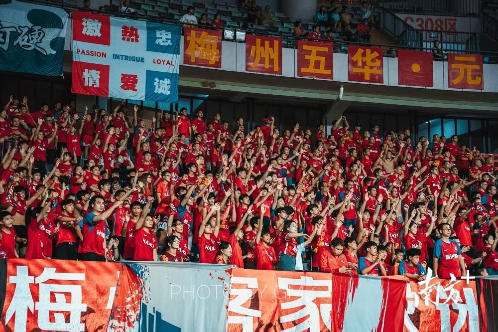 如果说“县超”是五华全民足球的缩影,那么中超赛事则让这座小城的足球热情走向全国。作为中国首个拥有中超球队的县级城市,梅州客家队的主场比赛成为五华最热闹的足球盛事。每逢比赛日,惠堂体育场迎来全国各地球迷,感受这座小城独有的纯粹足球热爱。数据显示,今年梅州客家队15场主场赛事,累计吸引近20万名球迷入场观赛。