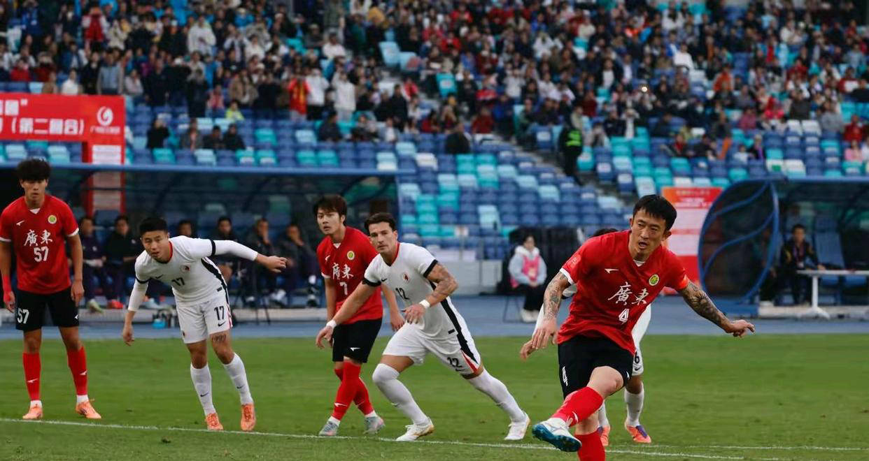 比赛伊始,双方就展现出强烈的取胜欲望和激烈的拼抢态势。省港杯不仅是竞技体育的较量,更是两地文化纽带和友谊的壁垒。本届第一回合比赛双方激战至2比2平,使得南沙主场第二回合更添变数与紧迫感。现场气氛火爆,广东球迷声浪不断,成为球队奋勇拼搏的动力源泉。随着裁判哨声响起,双方迅速进入状态,攻防节奏快,场面紧张激烈。广东队利用主场优势多次施压进攻,而中国香港队则展现出了坚定的防线和迅猛的反击能力。